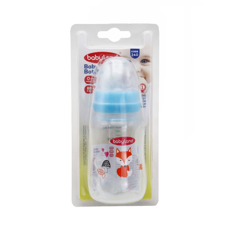 بطری شیرخوری بیبیلند کد 240 با ظرفیت 150 میلیلیتر، گزینهای مناسب برای تغذیه نوزادان از بدو تولد تا 6 ماهگی است. این محصول از مواد اولیه مرغوب و بهداشتی تولید شده و فاقد ترکیبات مضر مانند بیسفنول آ (BPA) است. استفاده از مواد فاقد BPA در ساخت بطریهای شیر کودک، از سال 2013 بهعنوان یک استاندارد جهانی پذیرفته شده و بیبیلند نیز در طراحی این مدل، این اصل را رعایت کرده است.