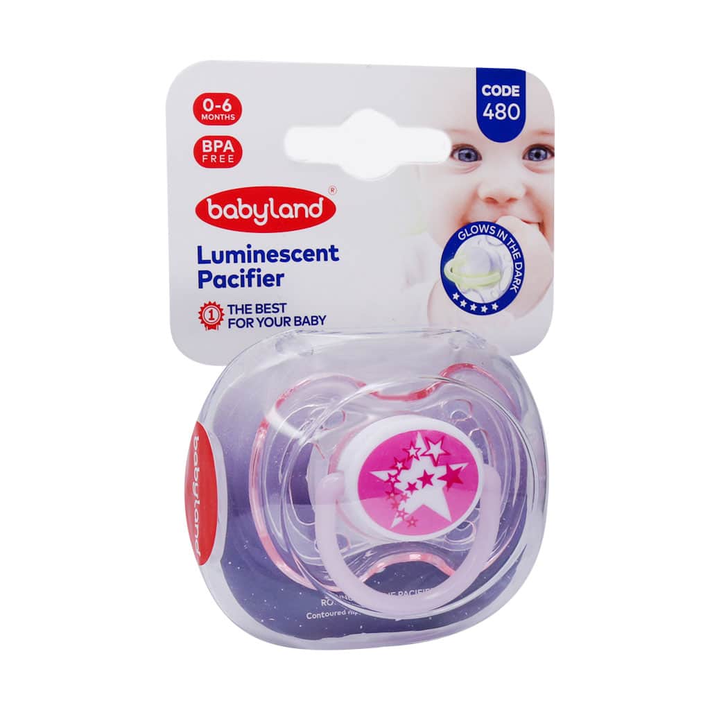 پستانک فندقی شب تاب بی بی لند کد 480 دارای دسته شب تاب مناسب کودکان 0_6 ماهگی فاقد مواد مضر شیمیایی جنس پستانک پلی کربنات دارای منفذ جهت گردش هوا روی پوست کودک سری گرد و جنس سری آن سیلیکونی است دسته آن شب تاب است و در فضای تاریک میدرخشد.