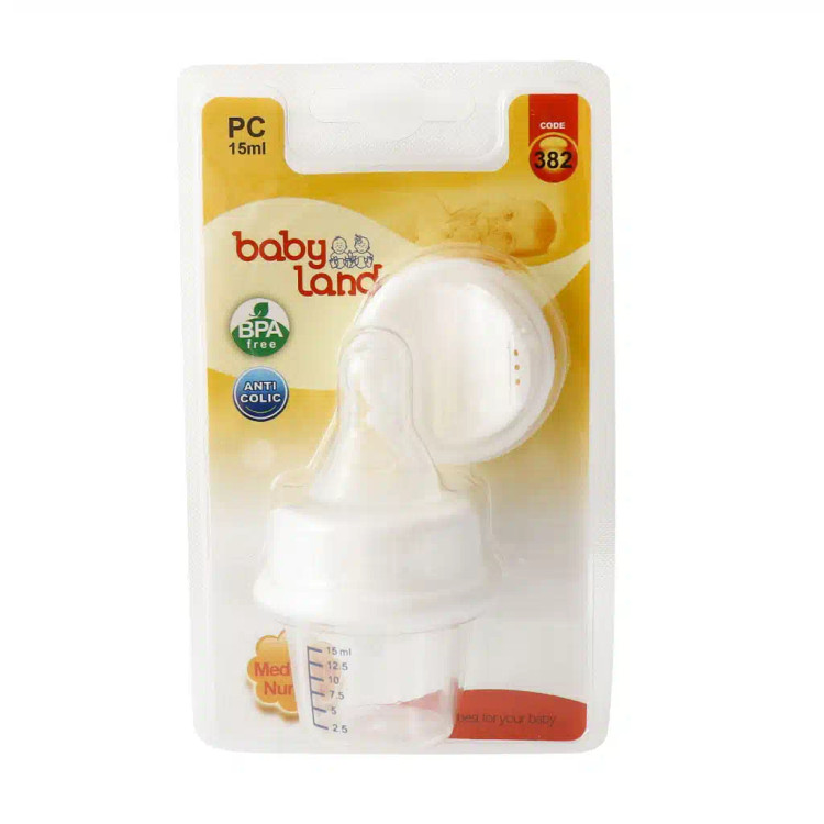 داروخوری کودک بیبی لند کد 382 دارای سرپستانک گرد سیلیکونی و با درجه بندی دقیق که به راحتی میتوانید دارو و ویتامینهای مورد نیاز کودک را به او بدهید