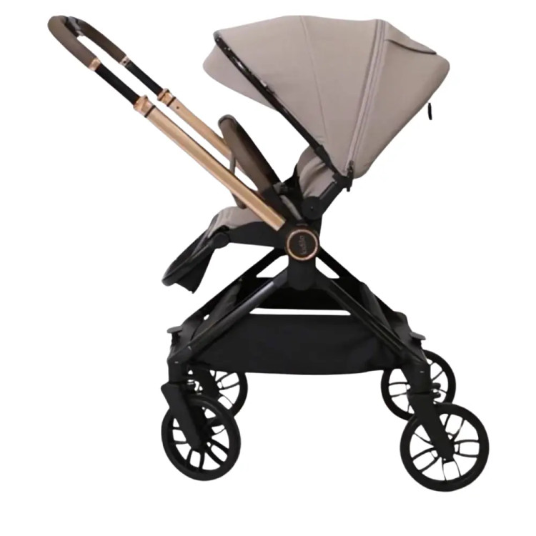 دسته دوطرفه امکان تعامل مستقیم با کودک را فراهم میکند و سایهبان گسترده با پوشش ضدآفتاب، محافظت کامل در برابر نور خورشید را تضمین میکند. سیستم تعلیق و کمربند ایمنی پنجنقطهای، ایمنی و راحتی کودک را در هر شرایطی فراهم میسازد. طراحی کابینسایز آن نیز حمل آسان در خودرو و هواپیما را ممکن میسازد.