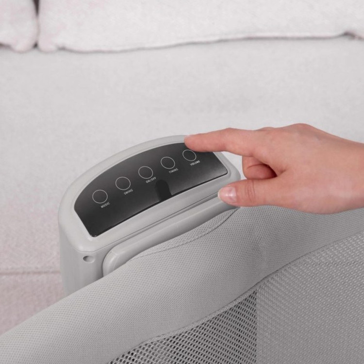 قابلیت اتصال به موبایل از طریق بلوتوث و USB، امکان پخش موسیقی دلخواه را فراهم کرده و ملودیهای داخلی آرامشبخش، خواب کودک را تسهیل میکنند. طراحی ارگونومیک، چرخهای روان، و قابلیت تنظیم ارتفاع، این مدل را به گزینهای ایدهآل برای استفاده روزمره و شبانه تبدیل کردهاند.