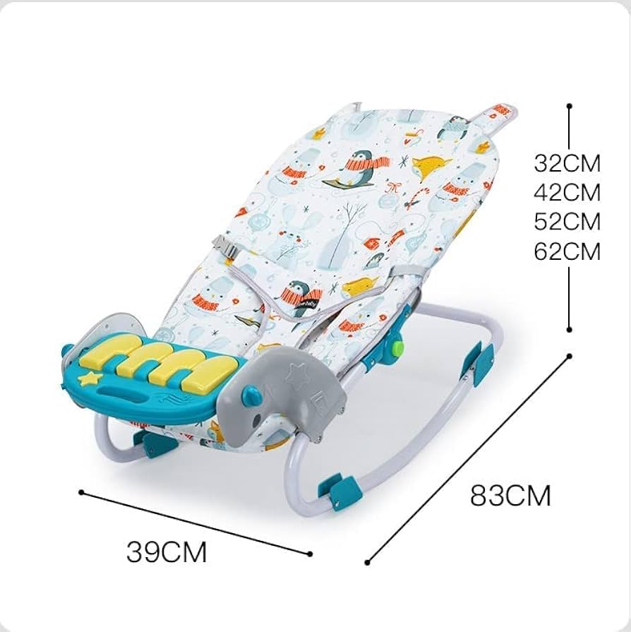 پارچه نرم و ضدحساسیت، راحتی نوزاد را تضمین میکند و طراحی ارگونومیک آن باعث میشود کودک در وضعیت ایمن و راحت قرار گیرد. پایههای منحنی امکان تابخوردن آرام را فراهم میکنند و موزیکهای تعبیهشده، حس شنوایی کودک را تحریک میکنند.