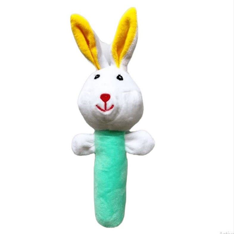 ویژگیها: دارای صدای جغجغه با فشار دست ، طراحی خرگوش با رنگهای ملایم و پاپیون پارچهای زیبا